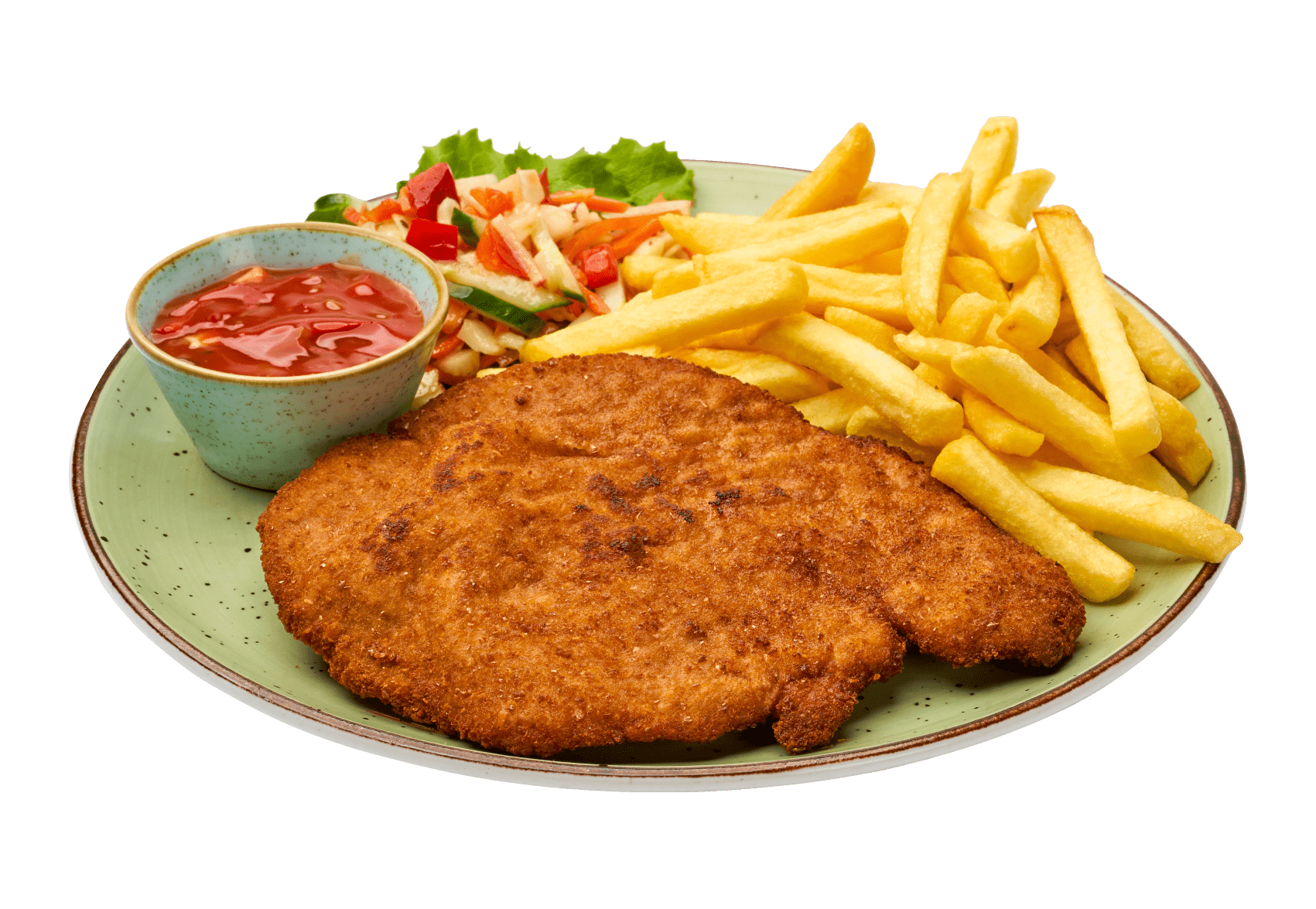 Dit menu biedt smakelijke opties, waaronder een heerlijk smaakvol broodje hamburger, onze verrukkelijke saté, bestaande uit twee smakelijke kip saté spiezen met een heerlijke satésaus, onze schaslick schotel met twee schaslick spiezen met warme of koude saus of onze overheerlijke Schnitzel schotel met keuze uit champignonroomsaus of zigeunersaus. Deze menu’s worden geserveerd met frietjes en een frisse salade.